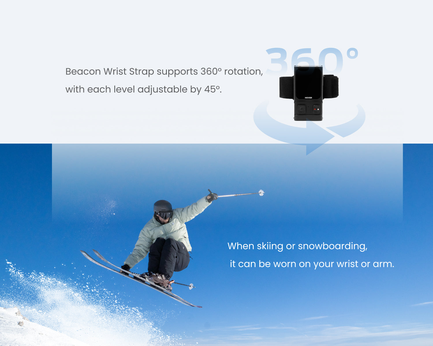 Zamocuj nadajnik Beacon na nadgarstku lub ramieniu podczas jazdy na nartach lub na deskorolce.